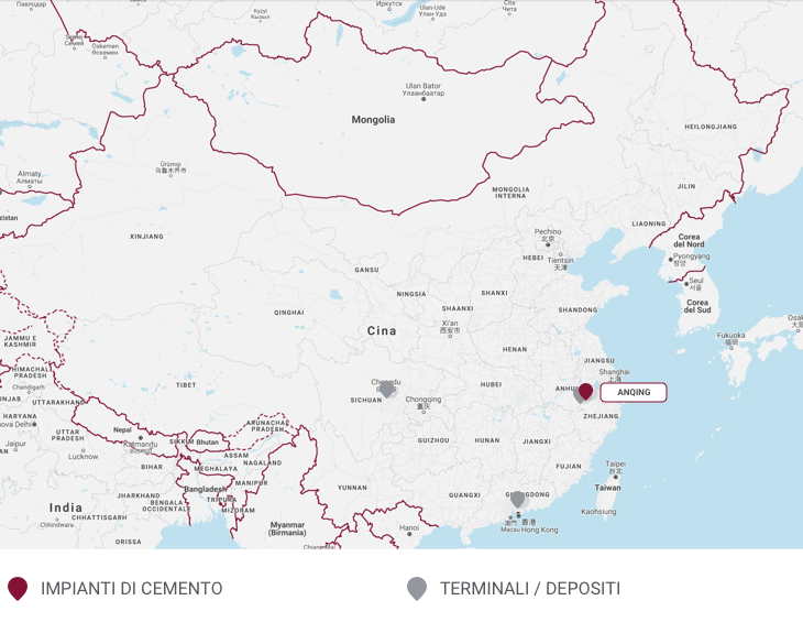 Lo stabilimento ha una capacità annua di 750 mila di tonnellate di cemento bianco ed è situato ad Anqing, a circa 600 km. ad ovest di Shanghai lungo il fiume Yangtze, con facile accesso al trasporto autostradale, marittimo e ferroviario. La Società vanta una propria cava con riserve abbondanti e di elevata qualità e dispone delle attrezzature tecnologicamente più avanzate nel processo produttivo.